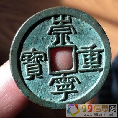 北宋徽宗崇宁年间铸(公元1102年~1106年)9 9 信 息 网。面文“崇宁重宝”隶书对读,古朴方正,多为光背,少数背有星、月、十字等。