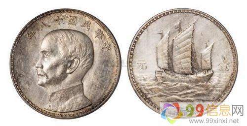 我们俗称帆船币,在中国近代发行的上千种老银币中,其影响仅次于“袁大头”银币9+9+x+i+n+x+i+n+e+t。 “船洋”银元是上海中央造币厂为民国时期南京政府发行的银本位币的俗称。其正面图案中间是民主革命先行者孙中山先生身着汉装的侧面头像,上方纪年“中华民国二十一年”99xinxi.net。背面图案是一艘双桅帆船放洋图,纪值“壹圆”,直径3.94厘米,重量26.7克,成色88%,含纯银23.5克,外环直齿边。“船洋”发行后,和“袁大头”、“开国纪念币”一起逐渐取代了流通于市面上的各式“龙洋”和外国银元99信息网www.99xinxi.net。